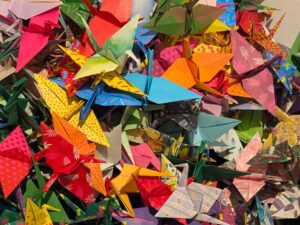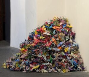 Folding cranes is a traditional Japanese art form known as origami, symbolizing peace, hope, and healing. The crane, revered in Japanese culture as a mystical creature that lives for a thousand years, is often folded in large numbers—especially in sets of 1,000, called senbazuru. According to legend, folding 1,000 paper cranes grants the folder a wish or brings good fortune. Today, they’re commonly created to honor loved ones, support healing, or promote peace, often strung together and displayed in temples, memorials, or homes